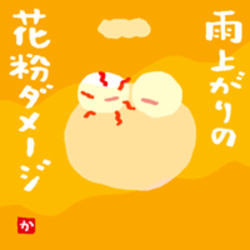 〈gifアニメ〉 ○昼、晴れてきて、外気が入ると、 くしゃみ連発、鼻グズグズ。 目がチカチカ、右目に、かゆみ。 両目ともに、充血。 雨上がりの花粉飛散。 〈日記〉 ○朝8時、雨上がりの中、散歩へ。 坂道に入ると、体が重く、 短めの坂道コースへ。 帰宅して…
